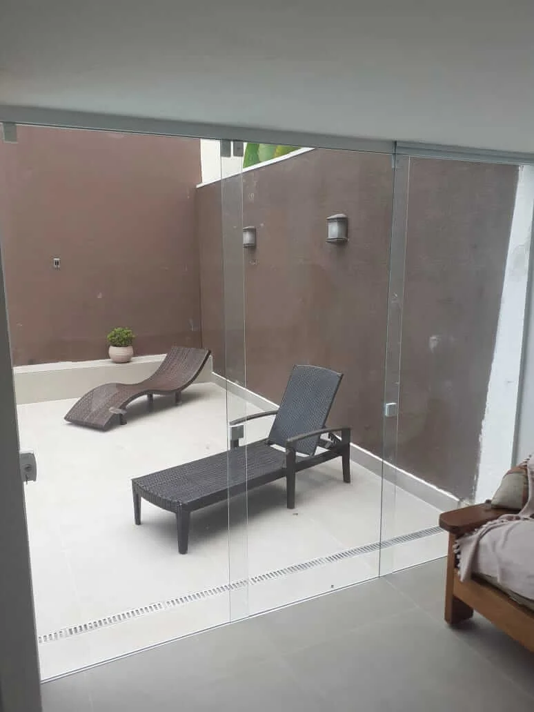 Varandas Gourmet e Sacadas: Proteção contra chuva e vento sem perder a vista panorâmica. Nossos sistemas garantem vedação eficiente e redução de ruídos externos.