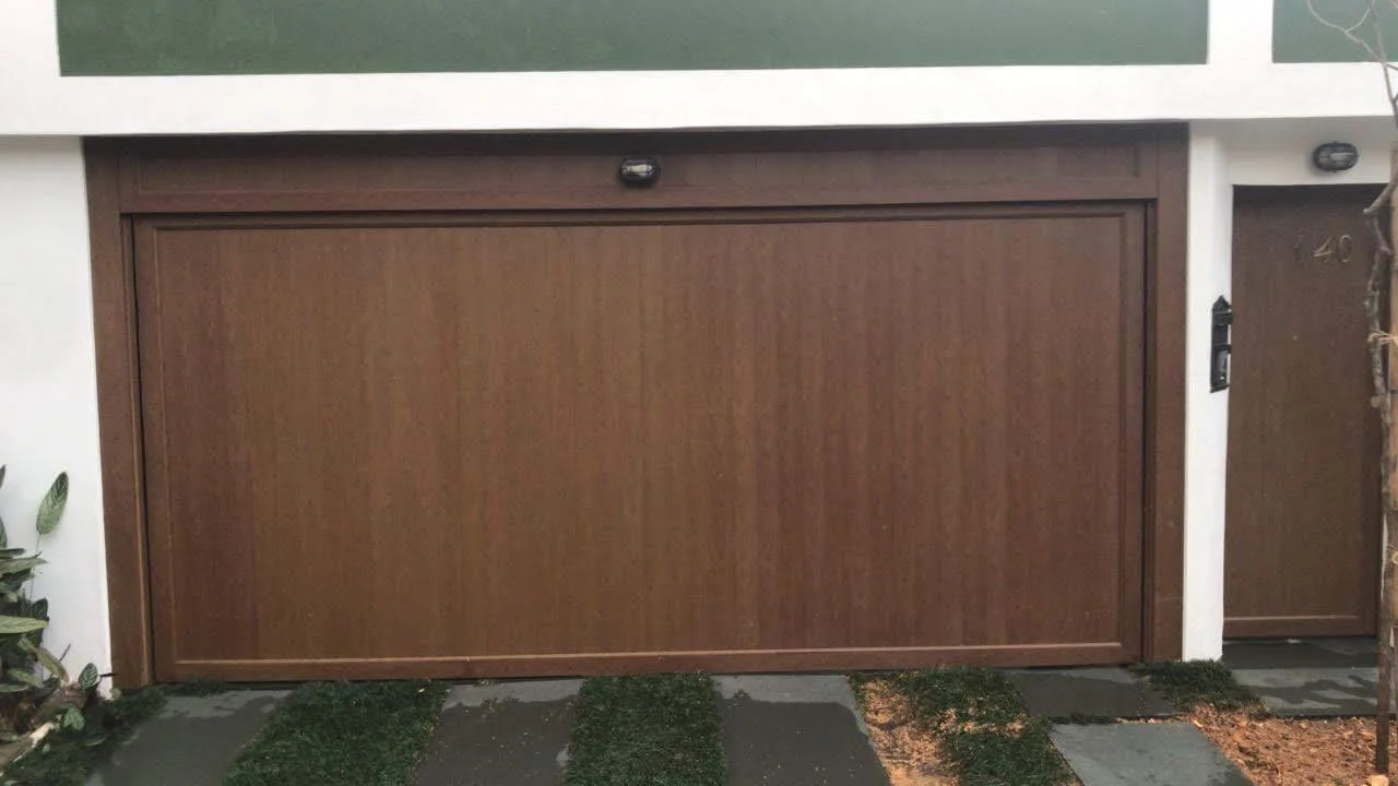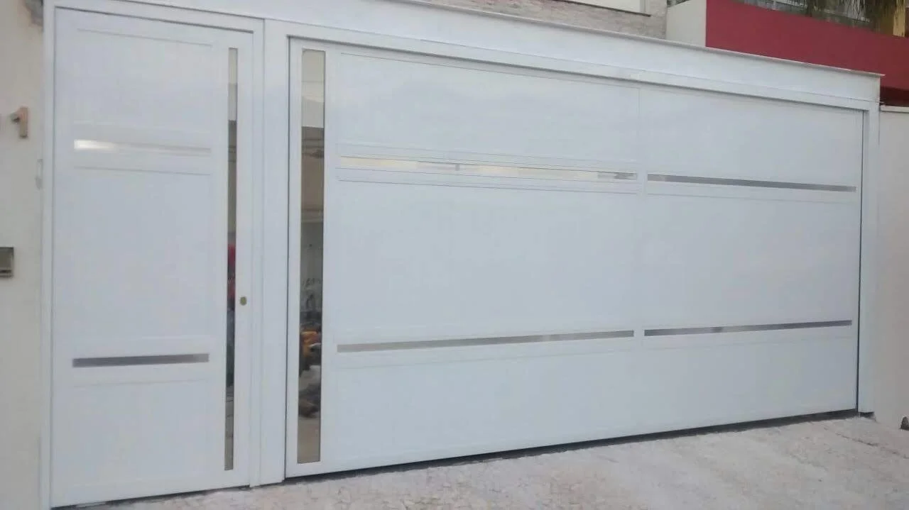 - Portão Basculante: O favorito em SP pela otimização de espaço. A folha eleva-se por meio de contrapesos embutidos, garantindo abertura total do vão sem ocupar as laterais da garagem. Ideal para calçadas movimentadas e sobrados.